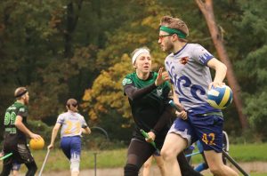 Das größte Alleinstellungsmerkmal des Sports ist eigentlich nicht die Harry-Potter-Vorlage. Sondern, dass er der einzige Vollkontaktsport ist, der in nationalen und internationalen Wettbewerben ausschließlich gemischtgeschlechtlich gespielt wird. Zu jedem Zeitpunkt eines Spiels dürfen maximal drei Personen desselben Geschlechts auf dem Feld stehen. Das schließt – im Quadball selbstverständlich – auch nichtbinäre Geschlechteridentitäten ein. In Zeiten immer reaktionärer LGBTQ-Politik, auch im Sport, bleibt Quadball offen für alle.