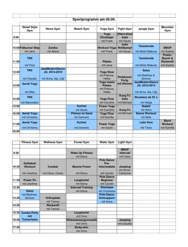 Den ganzen Tag über findet ein erweitertes Sportprogramm in unseren Kursräumen statt.